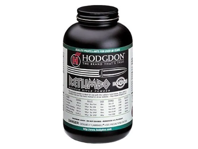 Hodgdon Retumbo is a modern, large-grain, slow-burning rifle powder designed for magnum big-game and long-range loads. retumbo hodgdon delivers high energy with controlled pressure, making it a favorite among bolt-action hunters and long-range shooters chasing heavy bullets and high muzzle energy. Its dense kernel and progressive burn characteristics help produce consistent velocities in large-capacity cases such as .300 Win Mag, .338 Lapua, and other belted magnum rounds.
